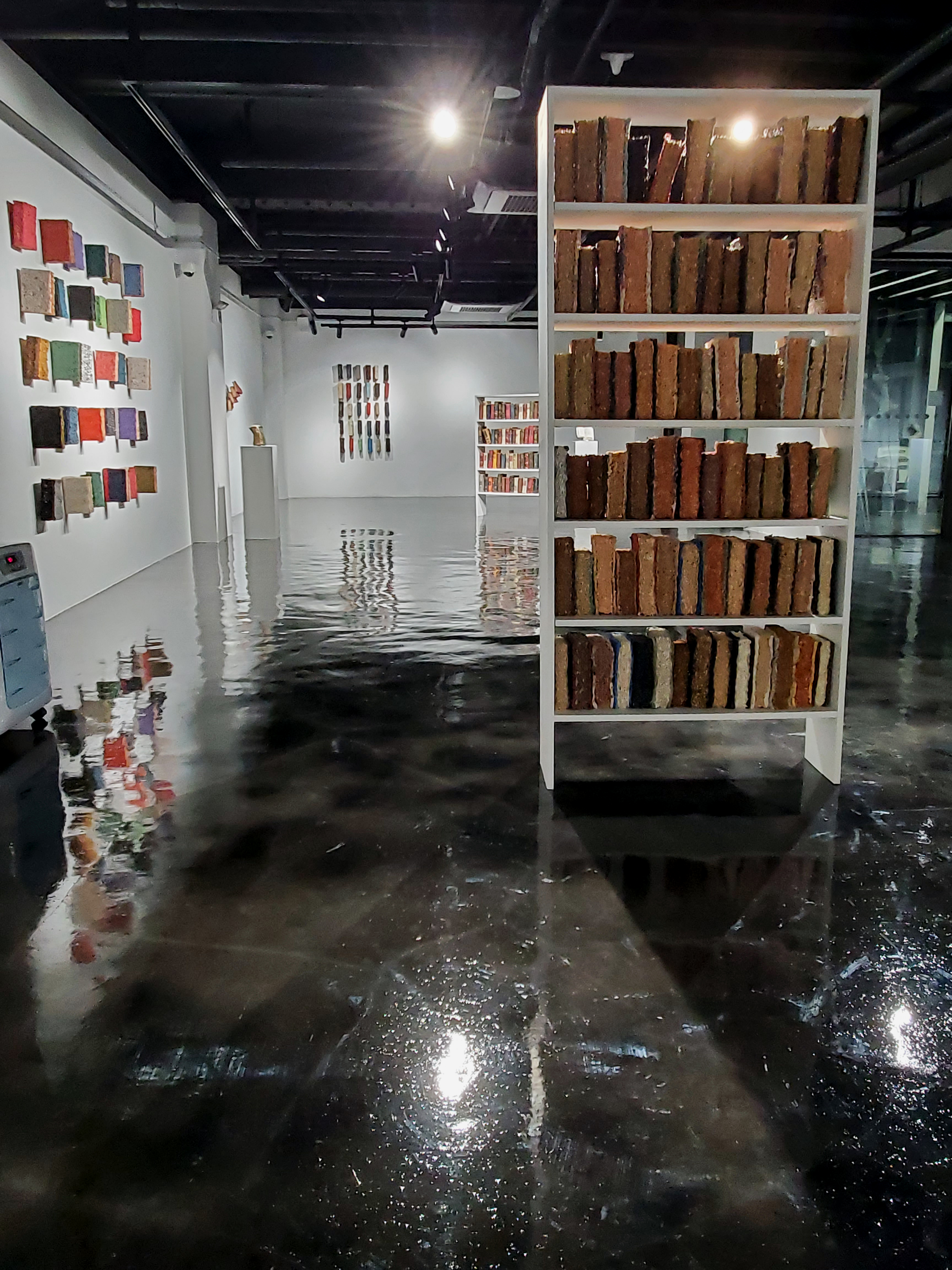 어쩔거야, 이 글자들! 이지현의 작품은 바스라질 것 같다. 마른 꽃 같다. 속이 상하다 못해 가장자리부터 타들어가기 시작한 시간 같다. 지우려고 했지만 끝내 지워지지 않은 인간의 기억 같다. 아니 이제는 눈물도 말라버린 나무의 기억 같다. 죽음과 부활이 나란하게, '소멸의 직전'이라는 커브를 목격하게 하는 이지현의 작품을 우아하다고 한다면 이 우아함의 대가는 혹독하다. 그러나 혹독하거나 지독하다고 하기에는 맺힌 곳도 욕망도 없어 아름답다. 바스러질 듯한 이 순결의 욕망을 무엇이라고 부를 수 있을까. 태초라고 부를 수 있을까. 비로소 책이라고 부를 수 있을까. 소멸 직전. 가장 위험한 커브. (웹진民硏 통권011호 이원글에서 에서 발췌). 일찍이 프랑스 철학자 '자크 데리다'가 말한 해체는 기존 텍스트 안에서 절대적으로 군림되어진 기존의 관념을 무너뜨리는 것이라 말한다. 그럼으로써 대상을 무력화거나 속박하는 성질로부터 해방시키는 작업이라고 덧붙인다. 돌아보면 창의적 변화는 보편적 개념 및 형식의 해체와 융합, 새로운 가치 창출을 단계로 이어진다. 그렇게 예술은 끊임없이 갱신되어 왔다. 그리고 본인의 작품에도 책의 본질을 파괴하면서 새로운 가치를 내세우는 방법적 측면이 이와 유사하다고 볼 수 있다. 이지현