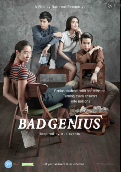 실화를 바탕으로 만든 <배드 지니어스>는 아시아 국가에서 연이어 벌어진 SAT(미국 대학수학능력시험) 부정행위 사건을 모티브로 하였다고 알렸졌다..