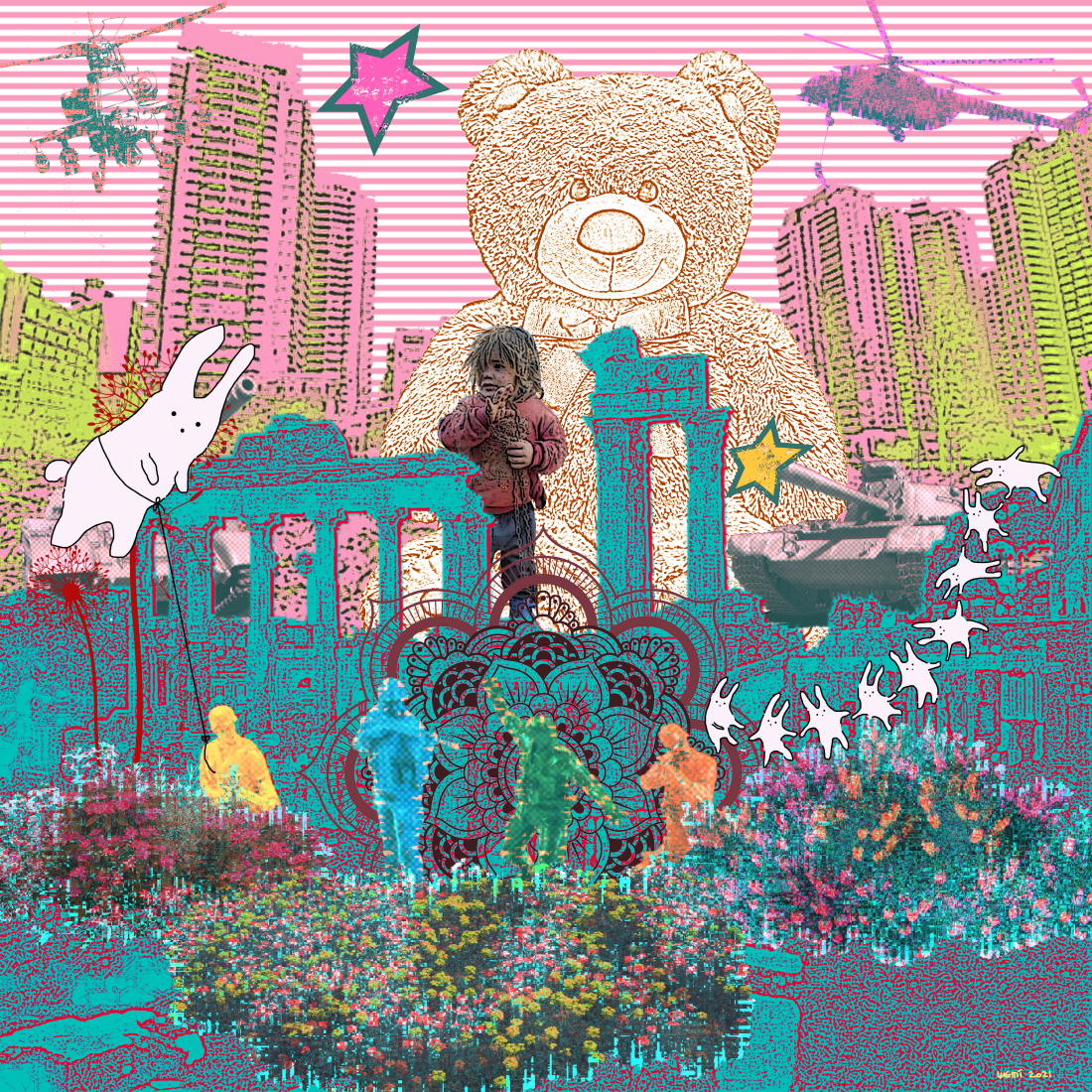 For Nahla_TheRefugeeChild, 100x100cm, digital composite on paper, 2021