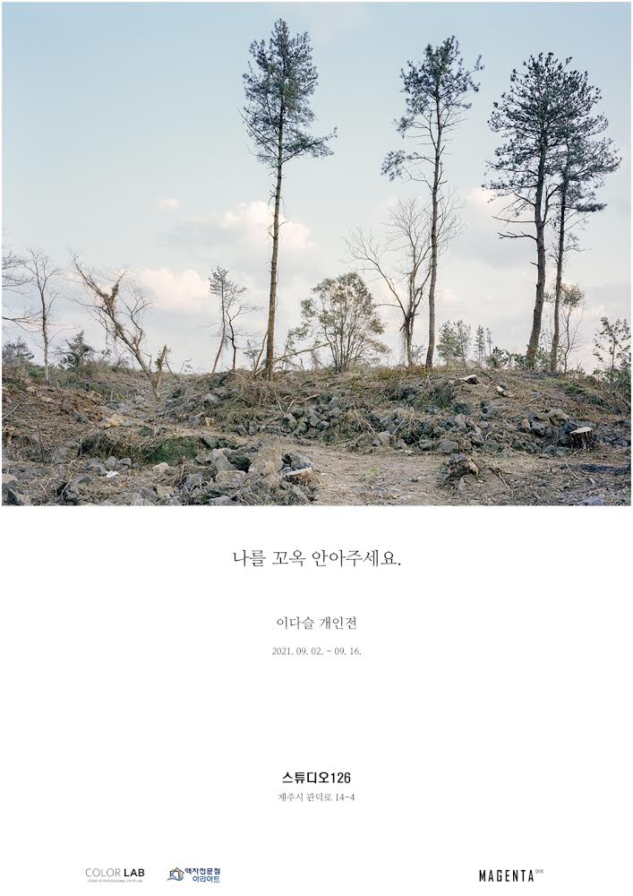 이다슬 작가는 실재하는 이 섬의 풍경을 예리한 시선으로 담아낸다. 나고 자란 제주에서의 추억과 현재 그가 바라보는 환경은 ‘혼재와 간극’을 극명하게 드러낸다. 사진을 기록의 매체로 다루는 그가 제시한 프레임에는 표면적으로 제주를 상징하는 이미지가 담겨있다. 파란 하늘에 떠 있는 하얀 구름, 치유의 상징인 울창한 숲, 무심코 걷던 오름의 풍경, 다양한 목적을 즐기는 관광객, 달빛을 따라 고이 펼쳐진 능선 등 꽤 익숙한 장면이다. 하지만 각 작품이 지닌 서사와 내러티브를 따라가다 보면 이내 낯설고 불편한 감정을 마주하게 된다. 이것은 인간의 이기심이 빚어낸 비현실적인 풍경이자, 우리의 현실을 자각하는 순간이기 때문이다. [글_ 권주희 디렉터]