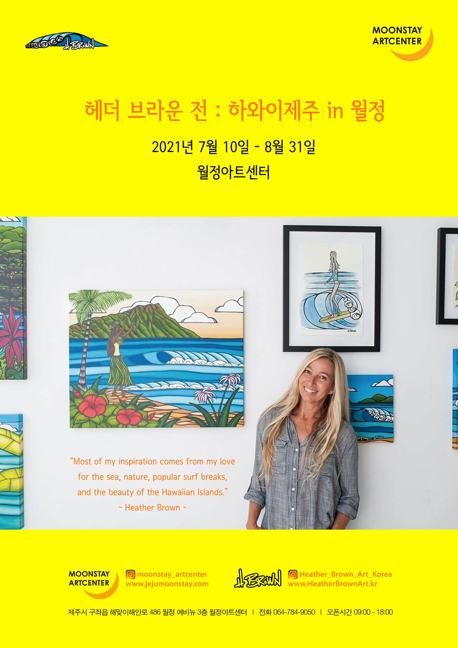 '이번 전시는 하와이에 살면서 바다를 사랑하는 서퍼로 그녀의 삶을 그림으로 표현하고 있는 하와이 대표작가인 헤더 브라운의 전시로 제주도의 여름 관광 시즌에