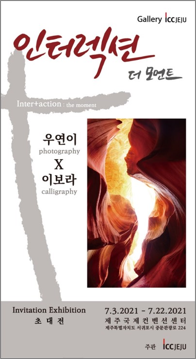 이번 전시명은 <인터렉션 더 모먼트>이며, 상호작용, 소통과 상호영향이라는 뜻을 가진 인터렉션(interaction) 단어처럼 이번 전시는 사진과 캘리그라피의 콜라보레이션으로 두 작가에게 내재되어 있는 것들을 끌어내어 서로에게 영향을 주고, 삶이 지치고 힘든 이들에게 삶을 움직일 수 있는 양방향 소통의 메시지를 담아내는 위로의 전시이다.