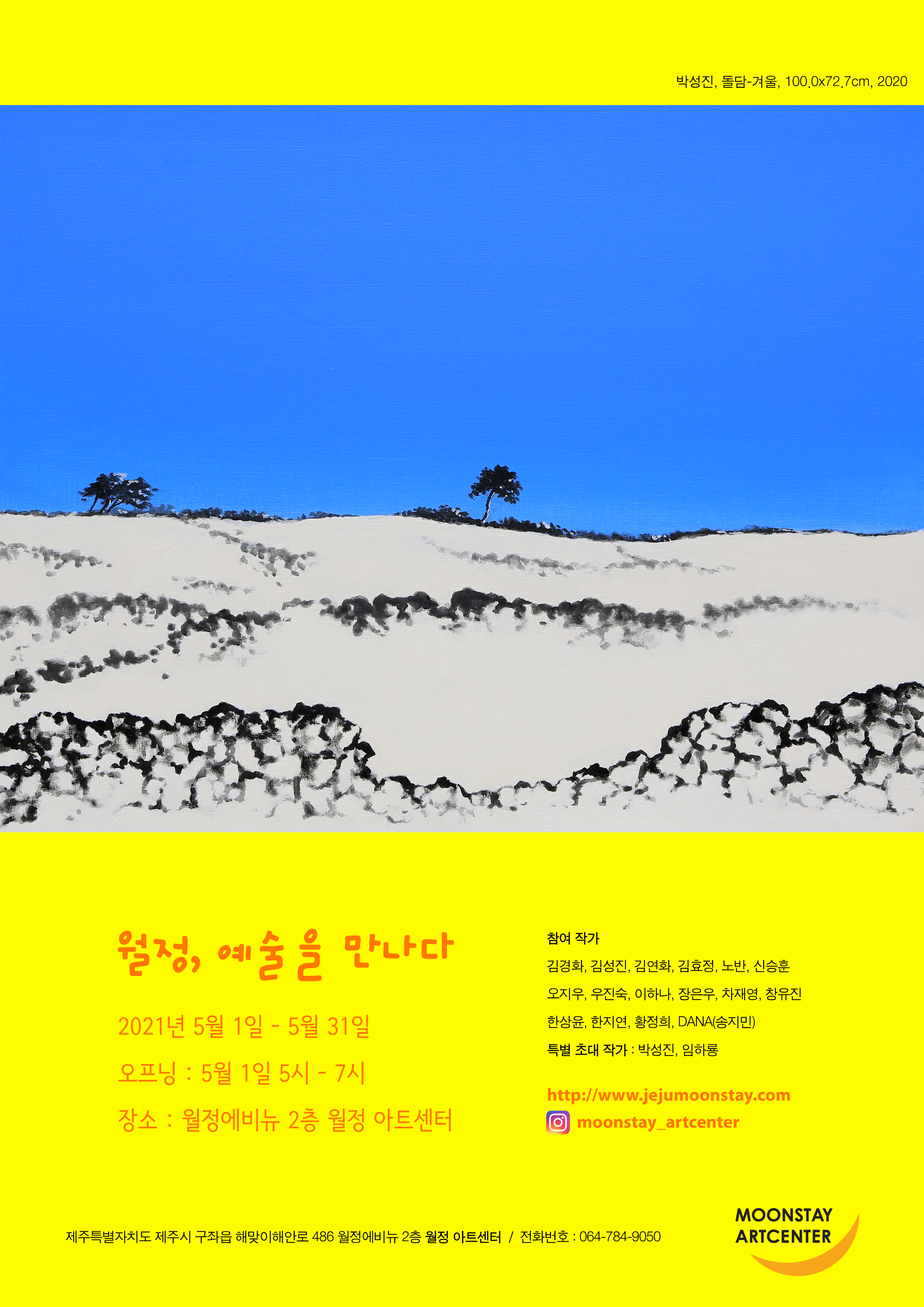 '월정 아트센터' 개관전은 '월정, 예술을 만나다'라는 주제로 김경화, 김연화, 노반, 한지연, 김성진, 황정희, 신승훈, 우진숙, 차재영, 이하나, 오지우, 한상윤, 김효정, 창유진, 장은우, DANA(송지민) 작가가 참여하였으며, 개그맨에서 작가로 변신한 아트테이너 임하룡, 제주대학교 예술디자인대학 미술학과 교수로 박성진 교수가 특별 초대되어서, 더욱 풍부한 전시를 선보입니다.