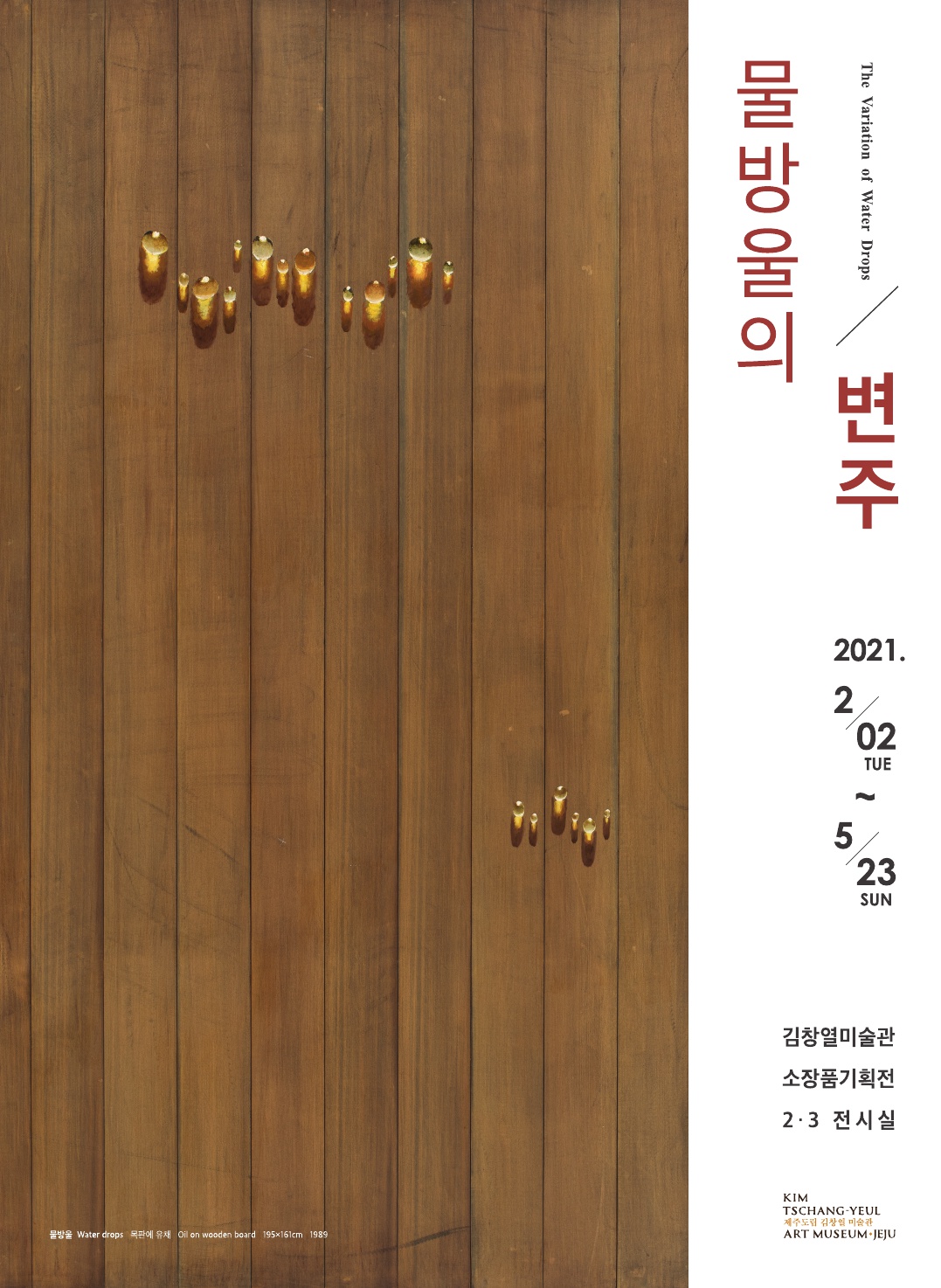 ■ 전시내용 : 〈물방울의 변주〉는 김창열 화백이 물방울에만 머물지 않고 다양한 시도를 했던 예술가로서의 도전정신에 대한 헌사이다. 이 전시로 안락함에 취하지 않고 구도자의 길을 걸어가고자 했던 김창열 화백의 집념을 다시 한번 느낄 수 있기를 바란다.