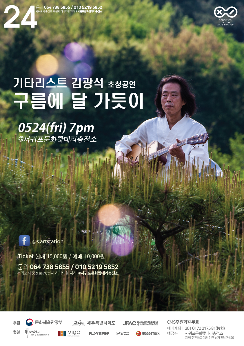 가장 한국적인, 그래서 가장 세계적인 기타리스트 김광석의 무대 ‘구름에 달 가듯이’ 가 향기로운 5월의 제주의 밤을 수놓는다. 록, 트로트, 국악 등 모든 장르를 넘나들고, 일렉(전자)과 어쿠스틱(클래식·통기타) 등 가릴 것도 없이 구름에 달 가듯이, 구름과 놀듯 연주하는 그의 기타 연주는 이미 타의 추종을 불허하며 “기타에 관한 한 동서고금을 통달했고, 기타를 예술의 경지로 끌어올렸다”는 평가를 받고 있다.