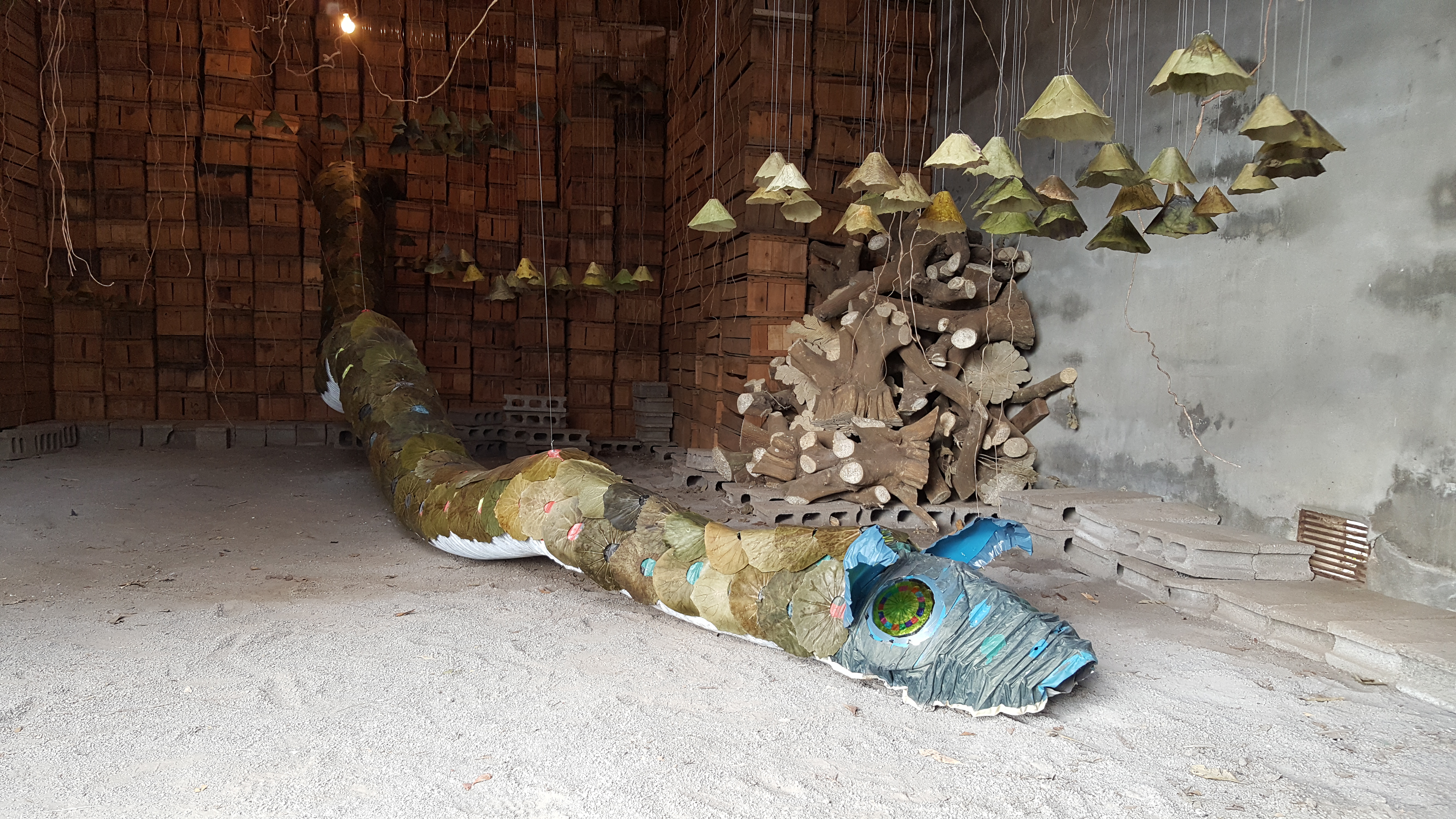 그것이 이 뱀이다. 큰 뱀은 그래서 제주에 오게 되었다. 이 큰 뱀은 2010년 ‘겹치는 시간’을 주제로 한 단체전에 ‘큰 뱀이 가는 길’이란 제목으로 설치된 작업이다. 여러 번 버려질 수 있었다. 이 뱀을 다시 작업한다. ‘걸음, 큰 뱀이 가는 길’은 2013년 개인전에 사용한 타이틀 이기도 하다. 다시 여러 시간들이 겹쳐진다.