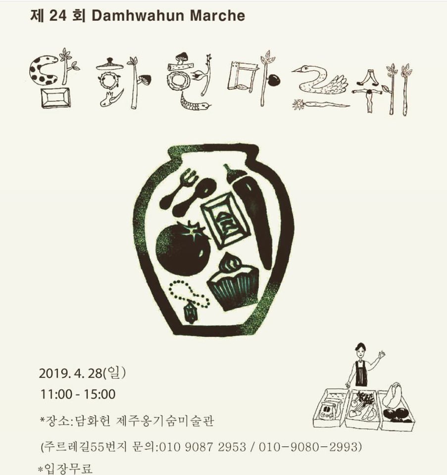 프로그램의 일환으로 주민과 함께 하는 담화헌 마르쉐가 오는 4월 28일 (일) 11시부터 3시까지 담화헌 스튜디오, 제주옹기 숨 미술관 마당에서 열립니다.