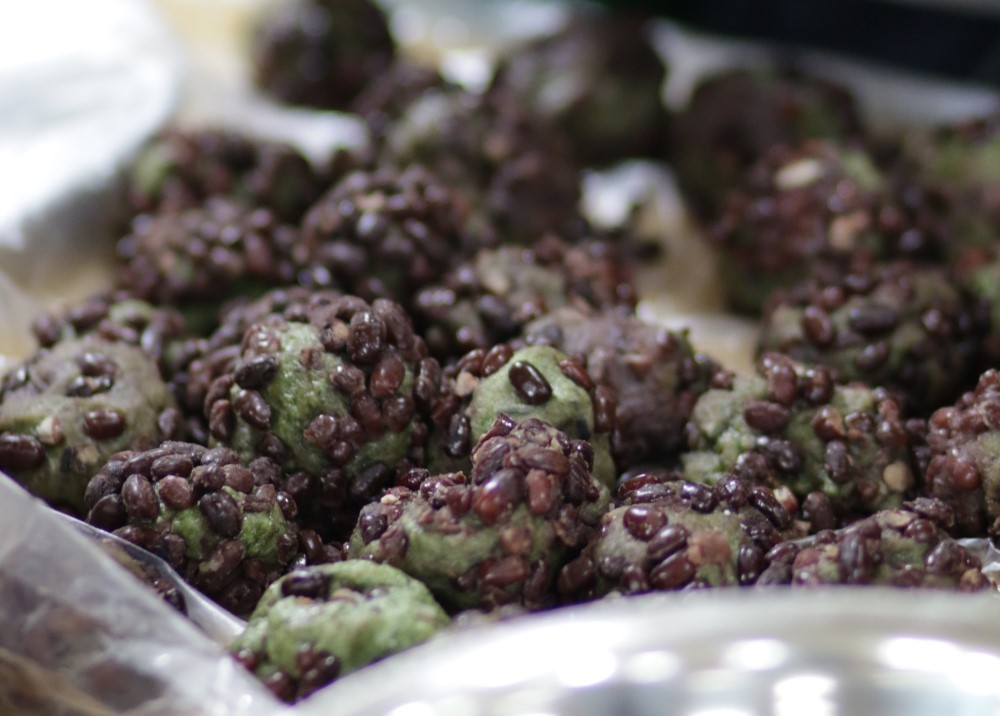 준비된 반죽에 팥앙금을 넣어 동그랗게 만든 후, 겉에 팥고물을 둘러 완성합니다. 만들자마자 바로 입속으로 쏙, 쫀득쫀득한 오메기떡 맛보세요.