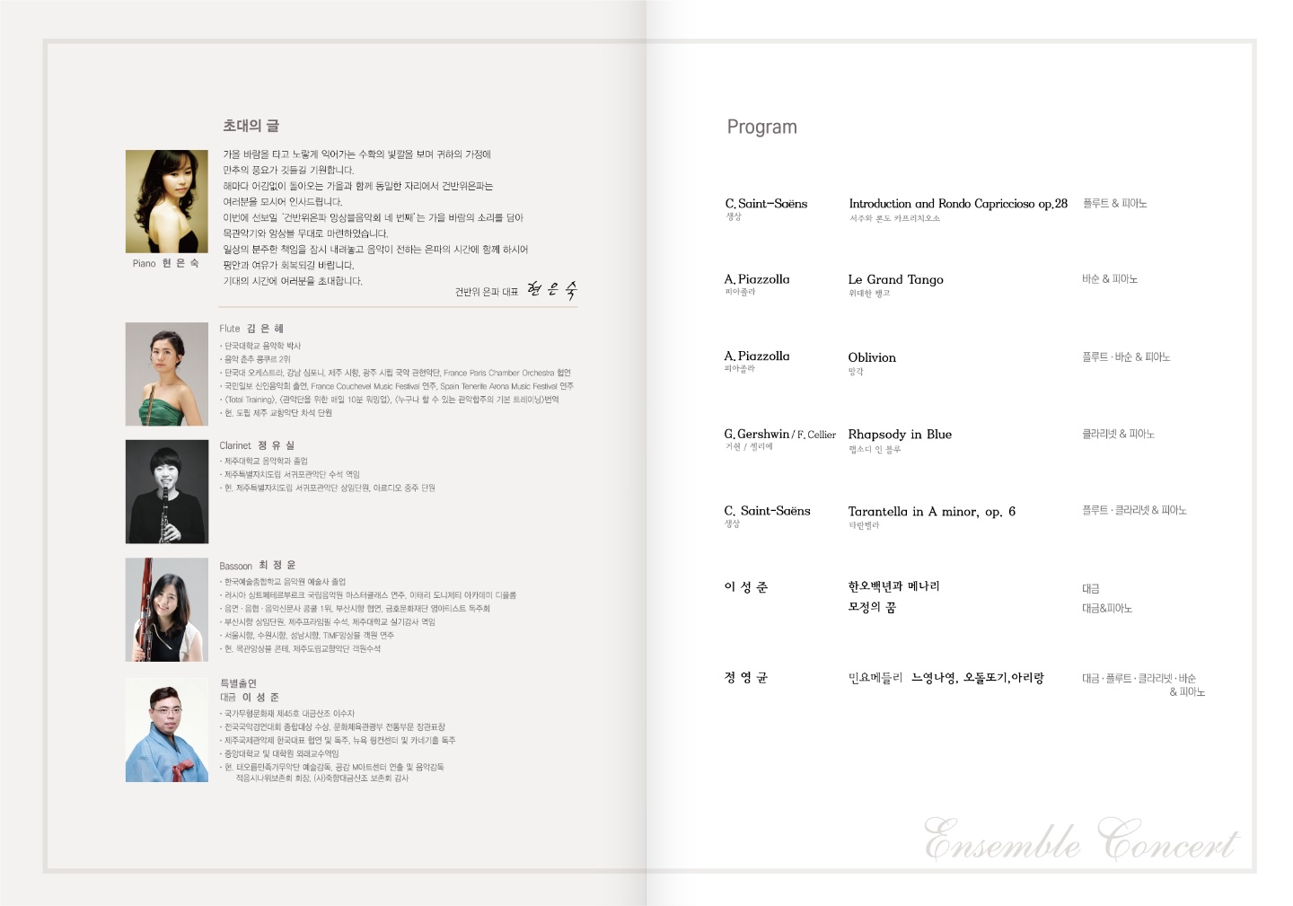 플루트-김은혜, 클라리넷-정유실, 바순-최정윤, 대금(특별출연)-이성준, 피아노-현은숙
