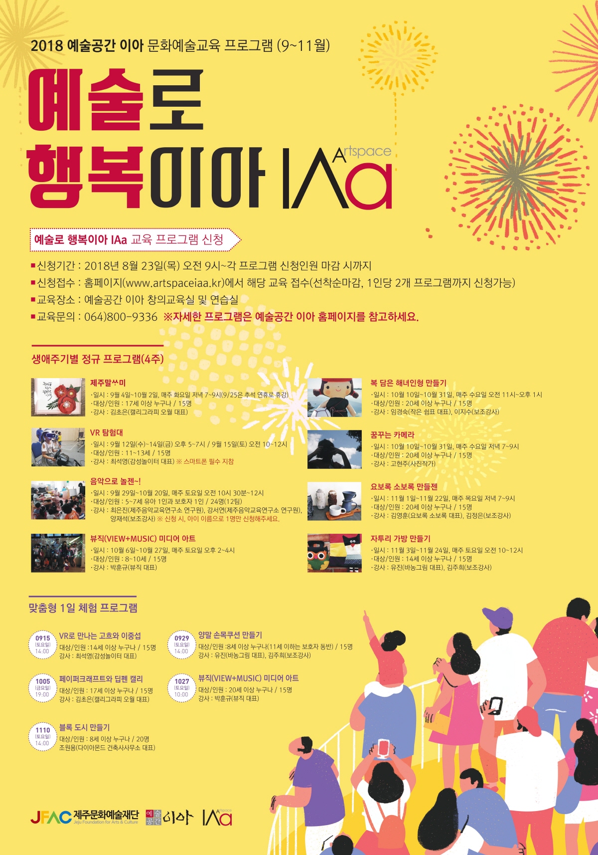 2018 예술공간 이아 2차 (9~11월) 문화예술교육 프로그램 [예술로 행복이아] 참가자 모집