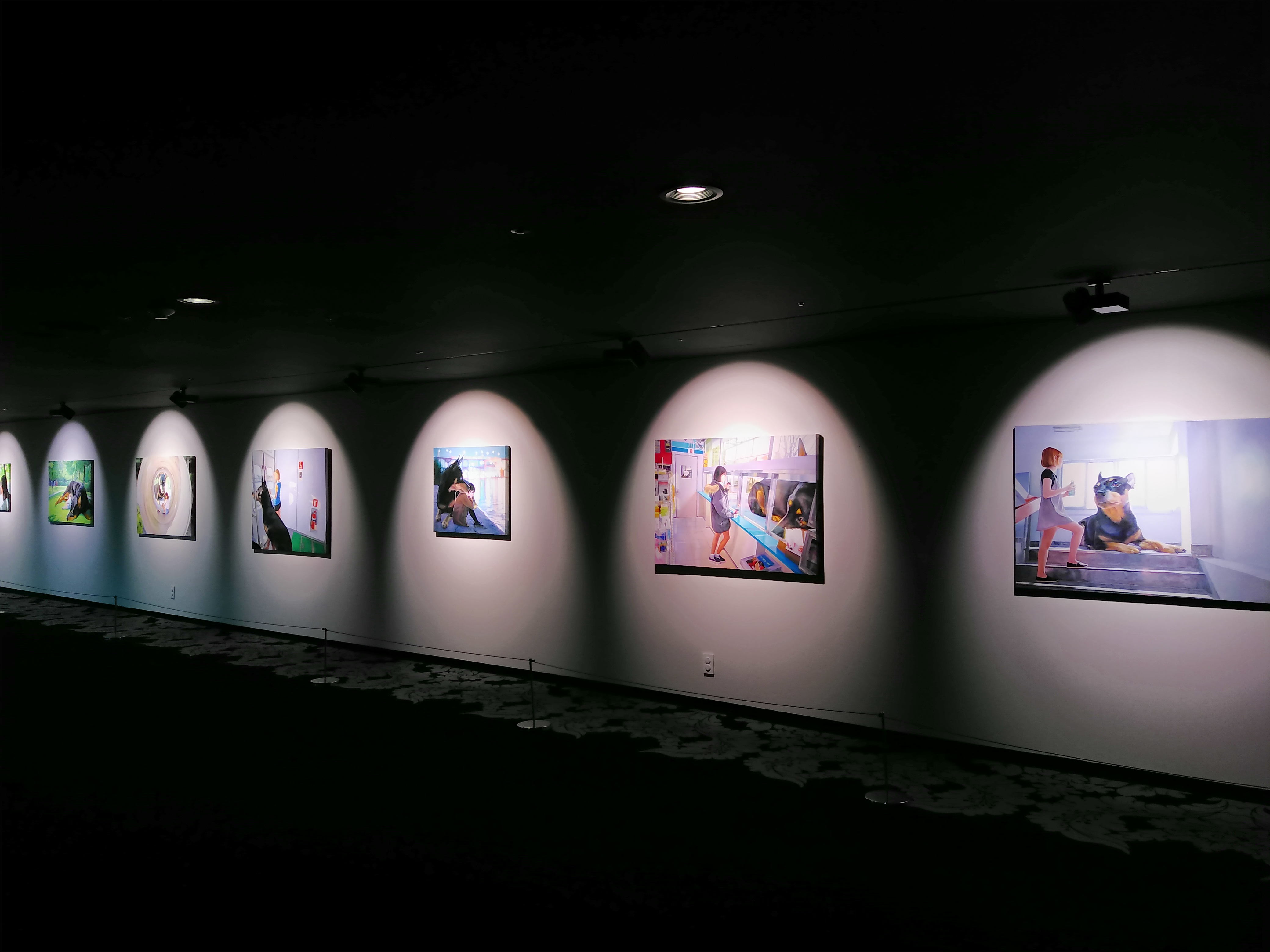 작가는 ‘판타지는 결핍에서 시작되며 자신의 작품을 통해 부정적 결핍을 해소하고 자신을 돌아볼 수 있는 기회가 되기를 희망한다’고 말한다. 이제 우리는 작품에 그려진 반려 견에 시선을 맞추고 비 언어적 의사소통으로 위로 받기를 바라본다.