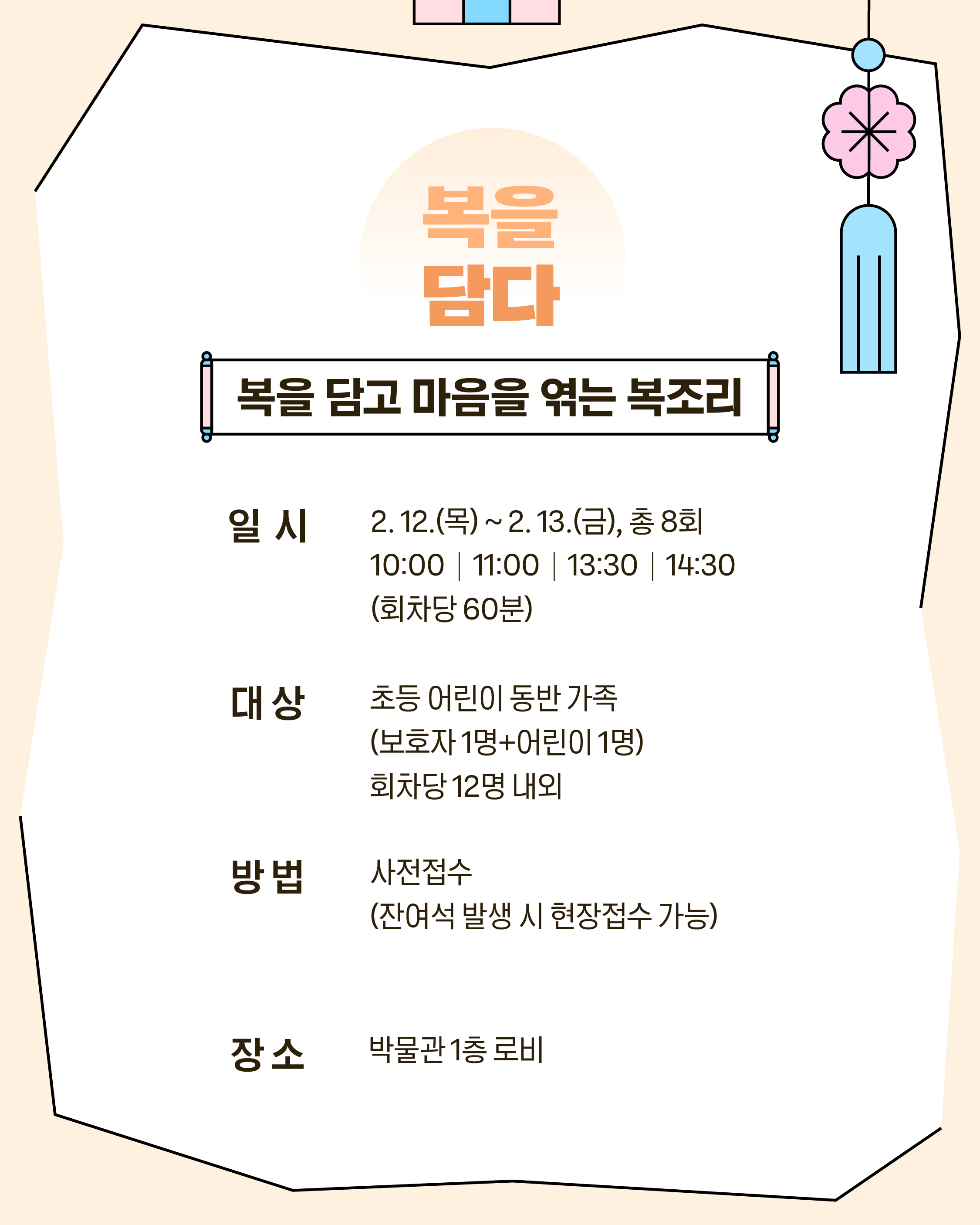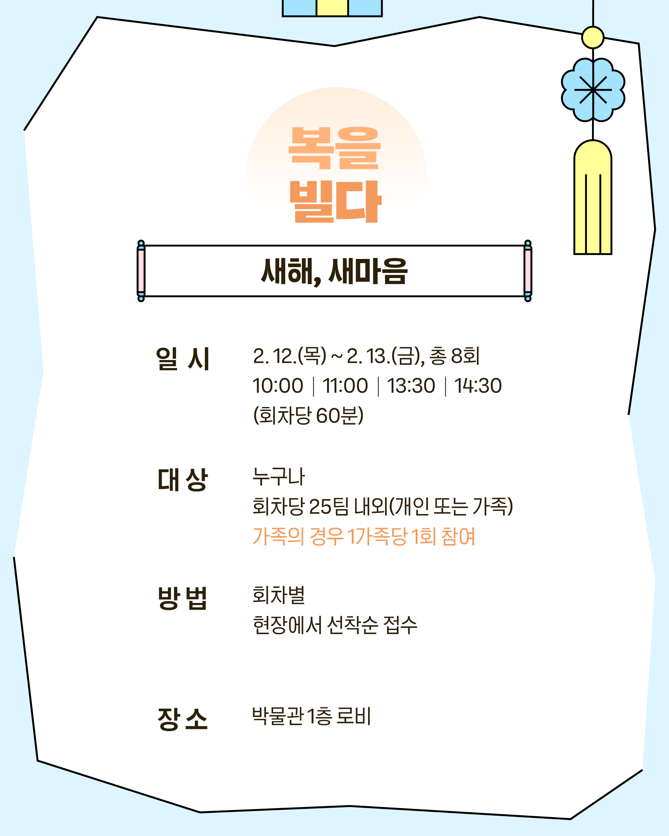 박물관에서 가족과 함께 복조리에 복을 담고, 떡으로 마음을 나누며, 한 줄의 다짐으로 새해 소망도 빌어보세요!