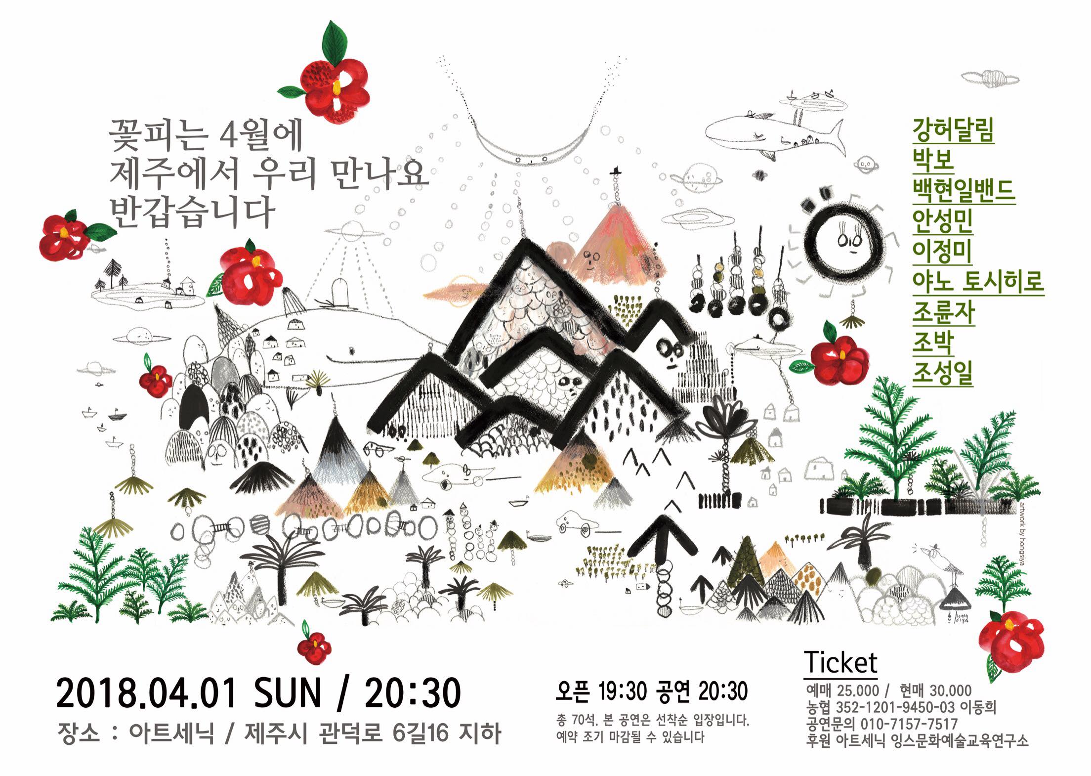 제주 4.3 70주년 행사 참여 차 방문하는 재일코리안 가수분들과 제주 음악가들의 교류 음악회입니다. 일본 전국에서 많은 일본인, 재일한국인들이 제주를 방문합니다. 일본에서도 한자리에 모이기가 드문 재일 동포 뮤지션들이 제주에 거주하는 뮤지션들과 만나서 어울릴 라이브공연을 하게 되었습니다.