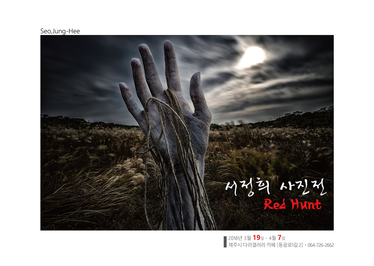 오는 3 월 19일부터 4월 7일까지 제주시 다리갤러리에서 민간외교사진작가 서정희 사진전 “Red Hunt”가 진행된다. 이번 사진전은 제주 43 70주년을 기념하여 작가가 그동안 담아 왔던 43 관련 사진들을 디지털 아트로 표현한 특이한 사진 전시다. 제주에 정착한 이후 알게 모르게 담았던 사진들이 43 과 관련되었던 사실을 알게 된 후 전시 기획을 하게 되었다고 한다.