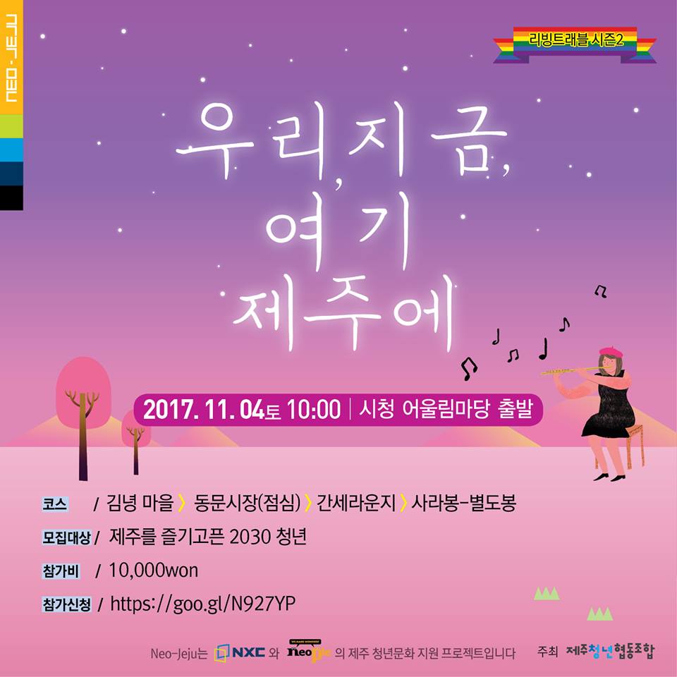 리빙트래블 은 '삶을 여행한다'는 뜻으로, 청년이 자신의 삶과 꿈에 대한 이야기를 제주 곳곳에서 풀어내는 청년기행 프로그램입니다:D