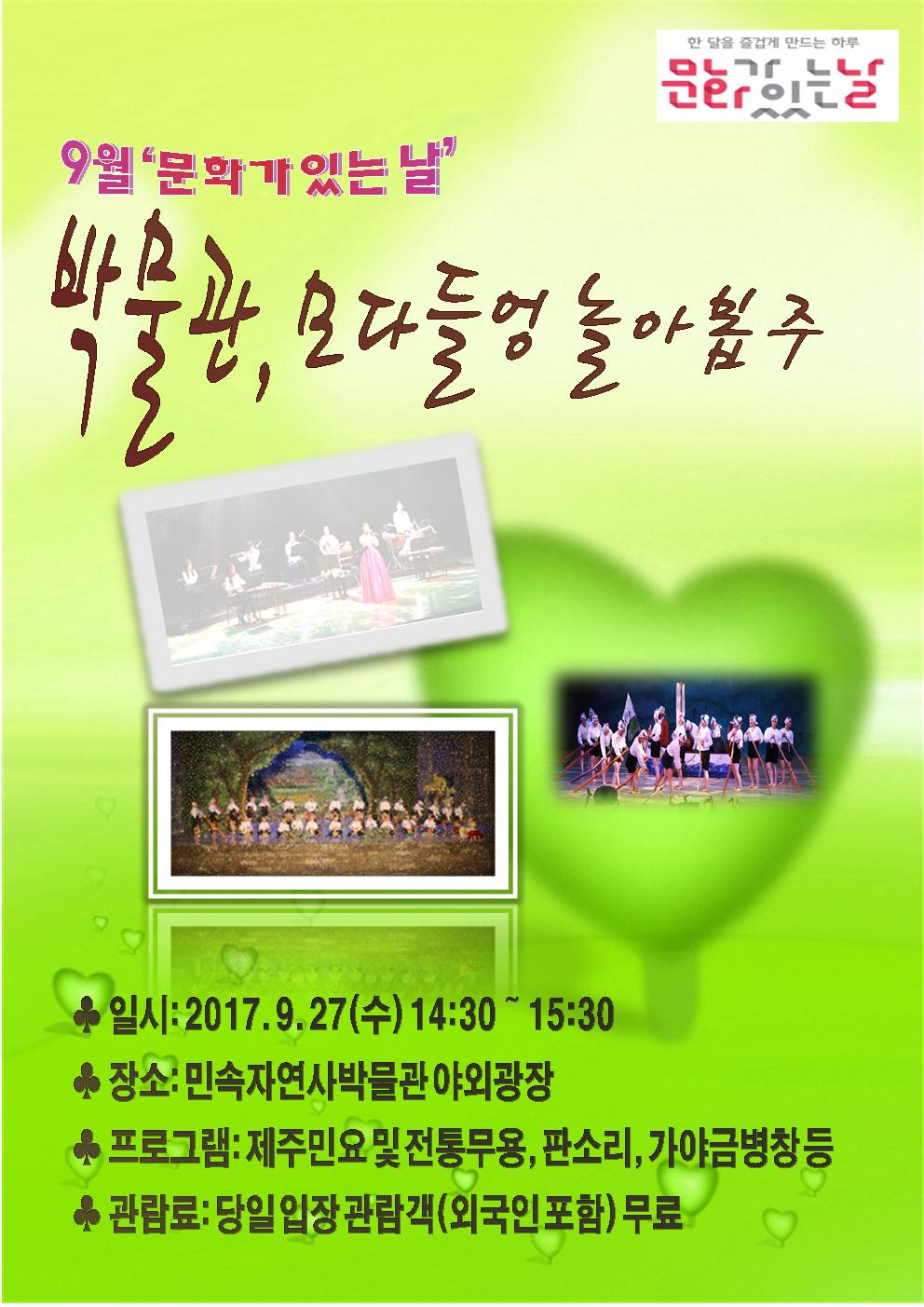 ▣ 행사명: 2017년 9월‘문화가 있는 날’「박물관, 모다들엉 놀아봅주」
