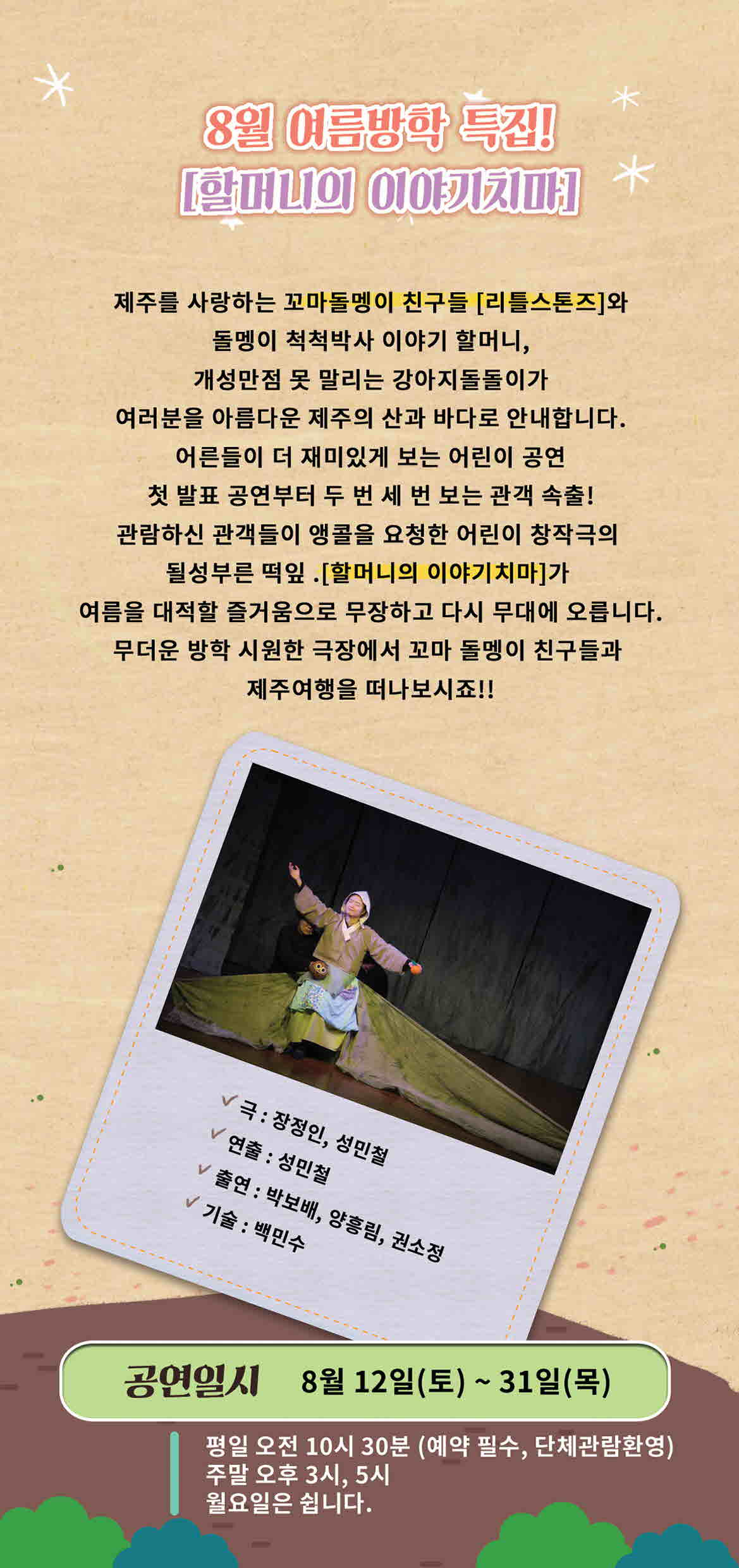 따뜻한 햇살, 싱그러운 흙내음처럼 다가오는 창작가족극 [할머니의 이야기치마] 로 놀러오세요!