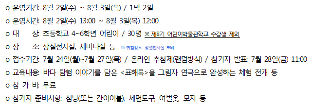 국립제주박물관은 보다 많은 어린이들이 박물관 교육프로그램에 참여할 수 있도록 <제주어린이박물관학교>, <박물관 여름캠프>에 한해서 추첨을 통한 참여 방식으로 진행하고 있습니다.