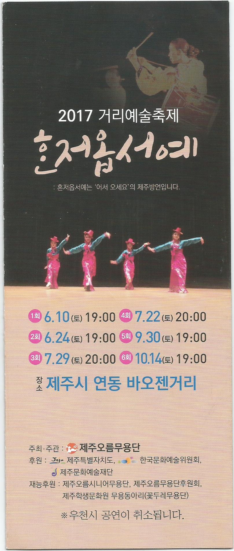 재능후원: 제주오름시니어무용단, 제주오름무용단후원회, 제주학생문화원 무용동아리(꽃두레무용단)
