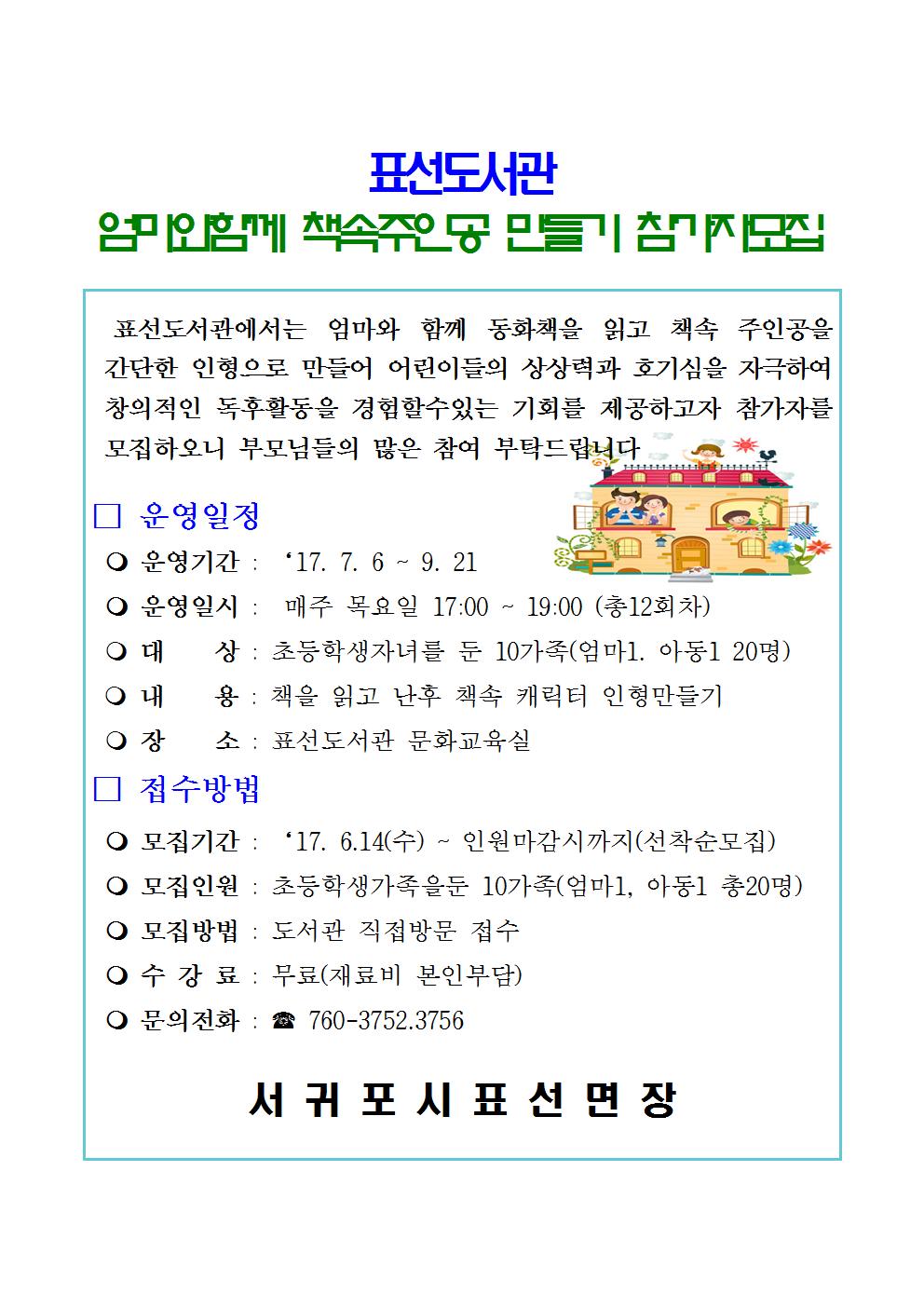 표선도서관 엄마와함께 책속주인공 만들기(참가자 모집:6.14.~마감시)