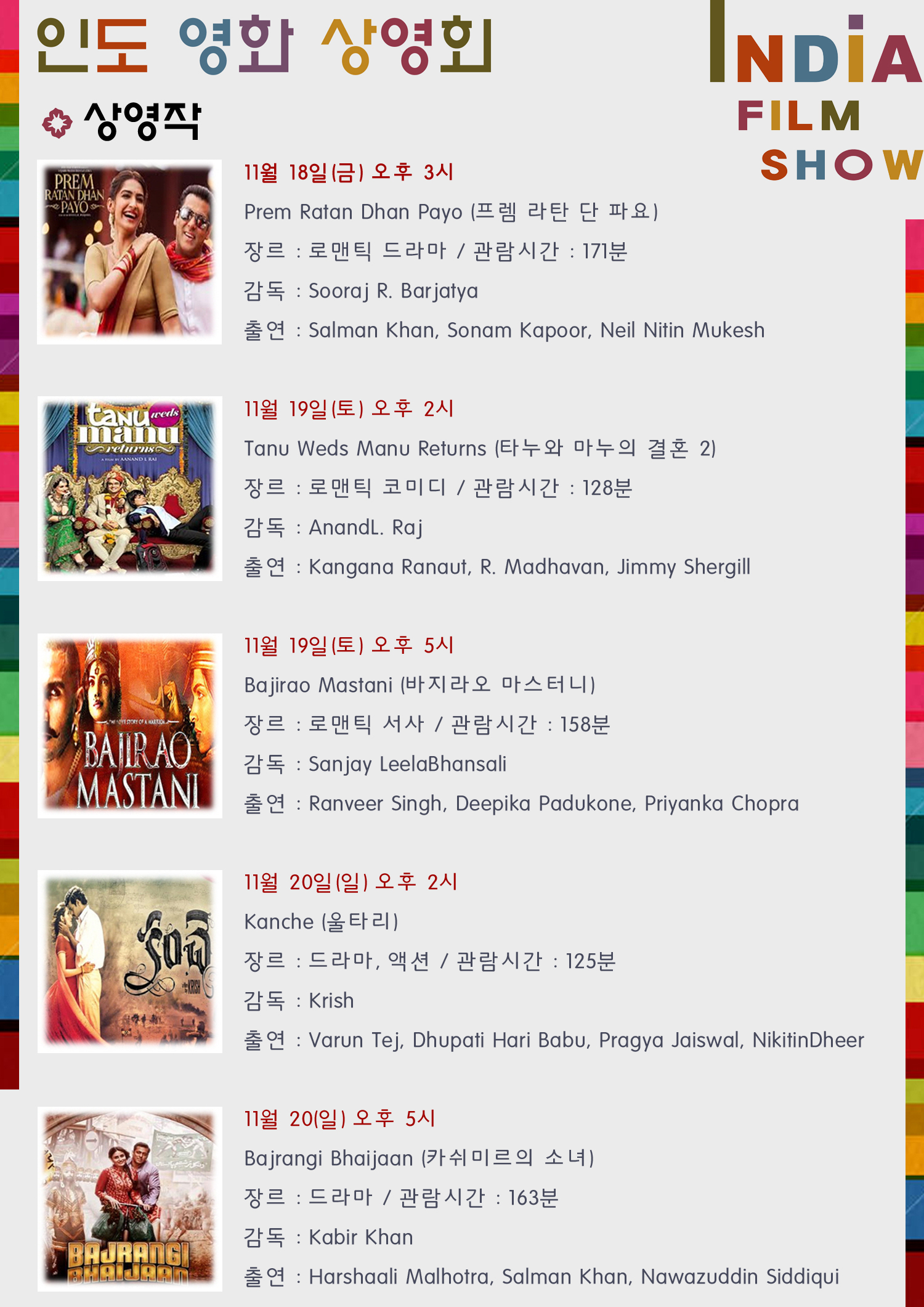 11/18(금) 오후3시, 11/19(토) 오후 2시, 5시, 11/20(일) 오후 2시, 5시