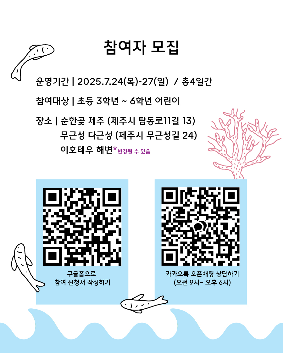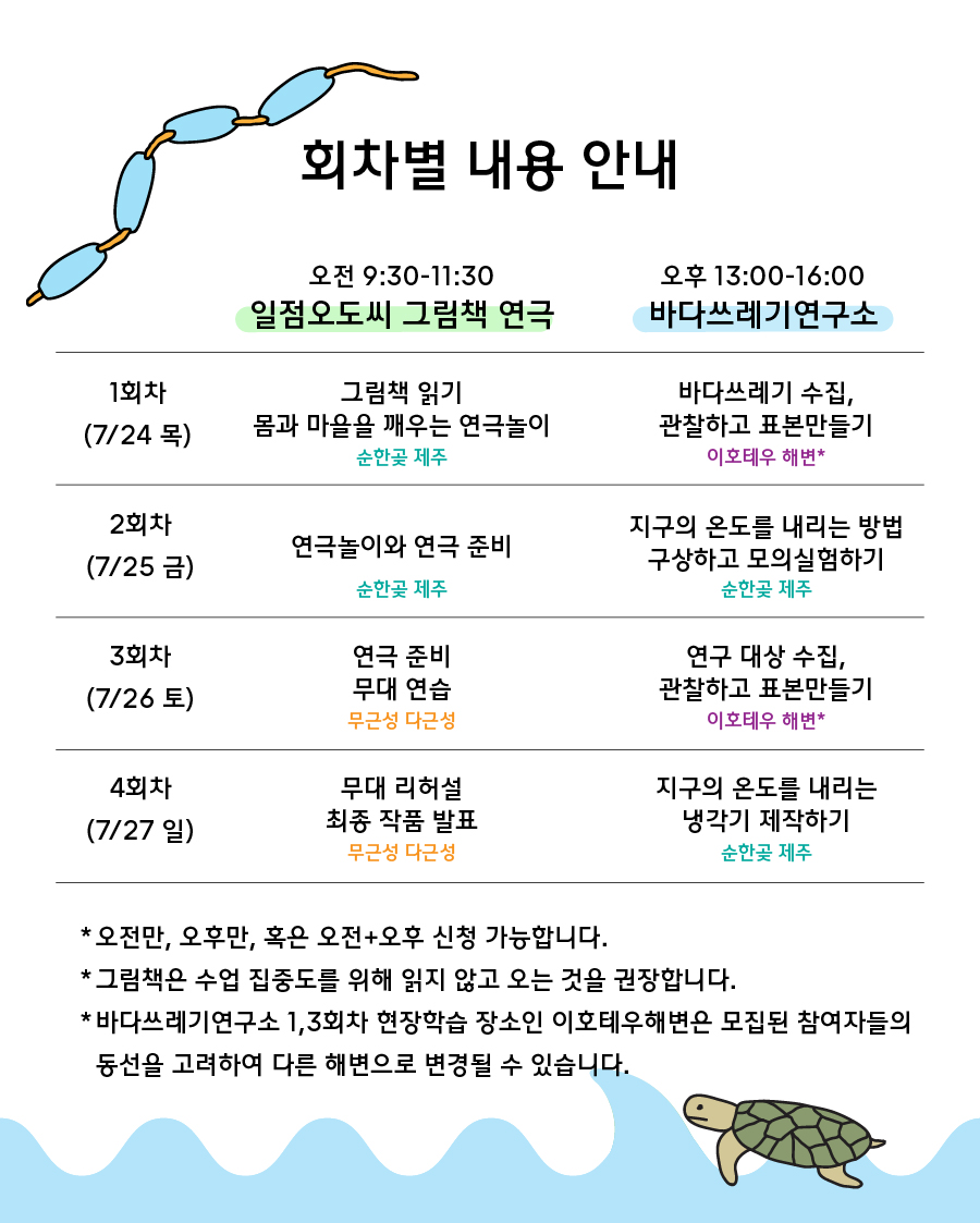 - 바다쓰레기연구소 : 이호테우 해변*(참여자들 동선 고려하여 변경가능), 순한곶 제주