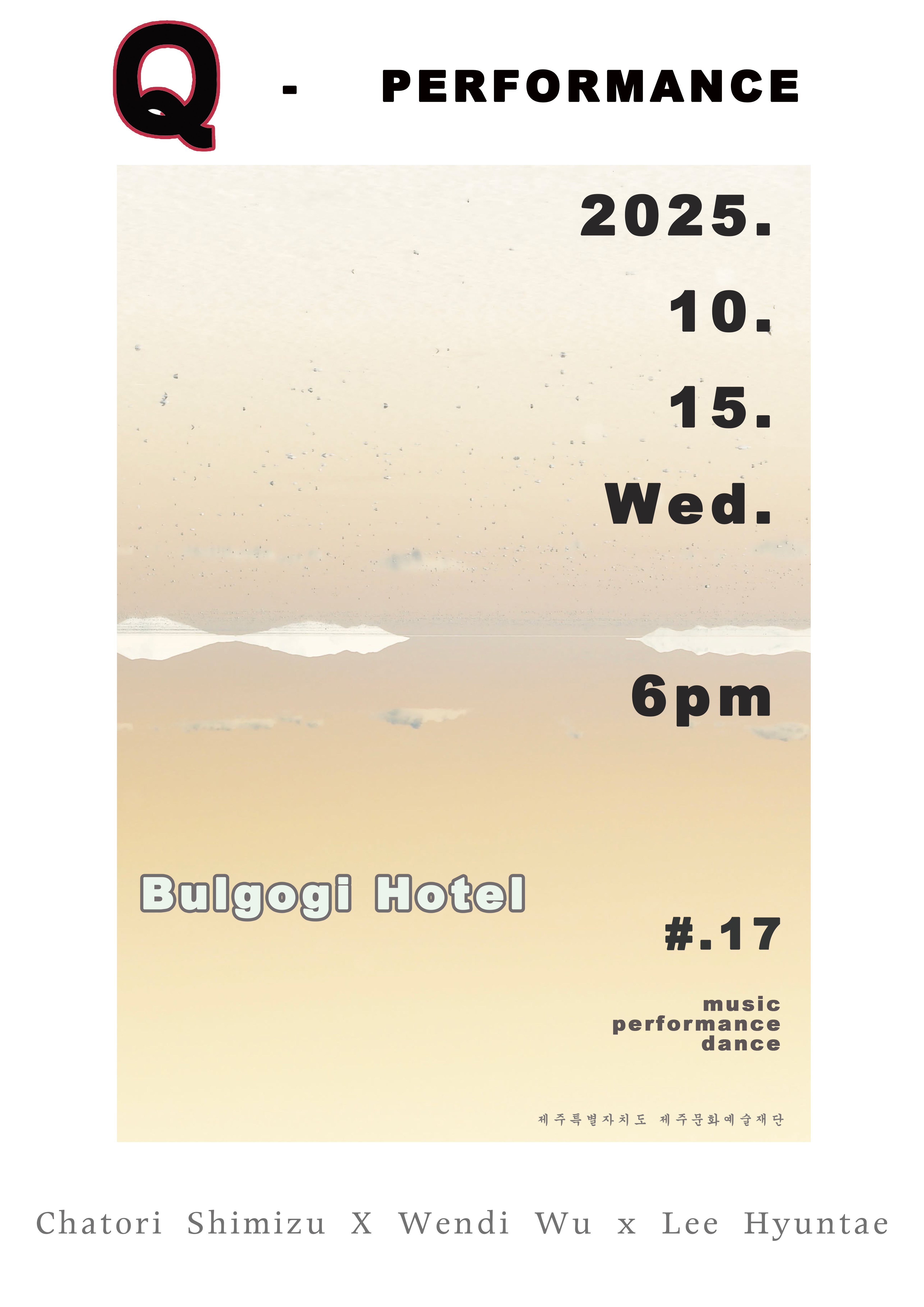 훗카이도를 베이스로 작곡가이면서 퍼포머인 Chatori Shimizu와 상하이 베이스의 움직임아티스트 Wendi Wu, 제주를 베이스로 활동하는 사운드아티스트 이현태가 만나, 1시간동안 전통과 실험, 침묵과 소리, 빛과 어둠, 밀고 당기기를 주제로 특별한 시도의 시간을 만들어 갑니다.