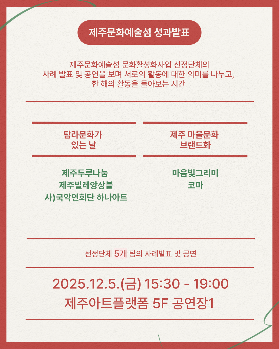 ▪️대상: 문화예술을 사랑하는 제주도민 누구나