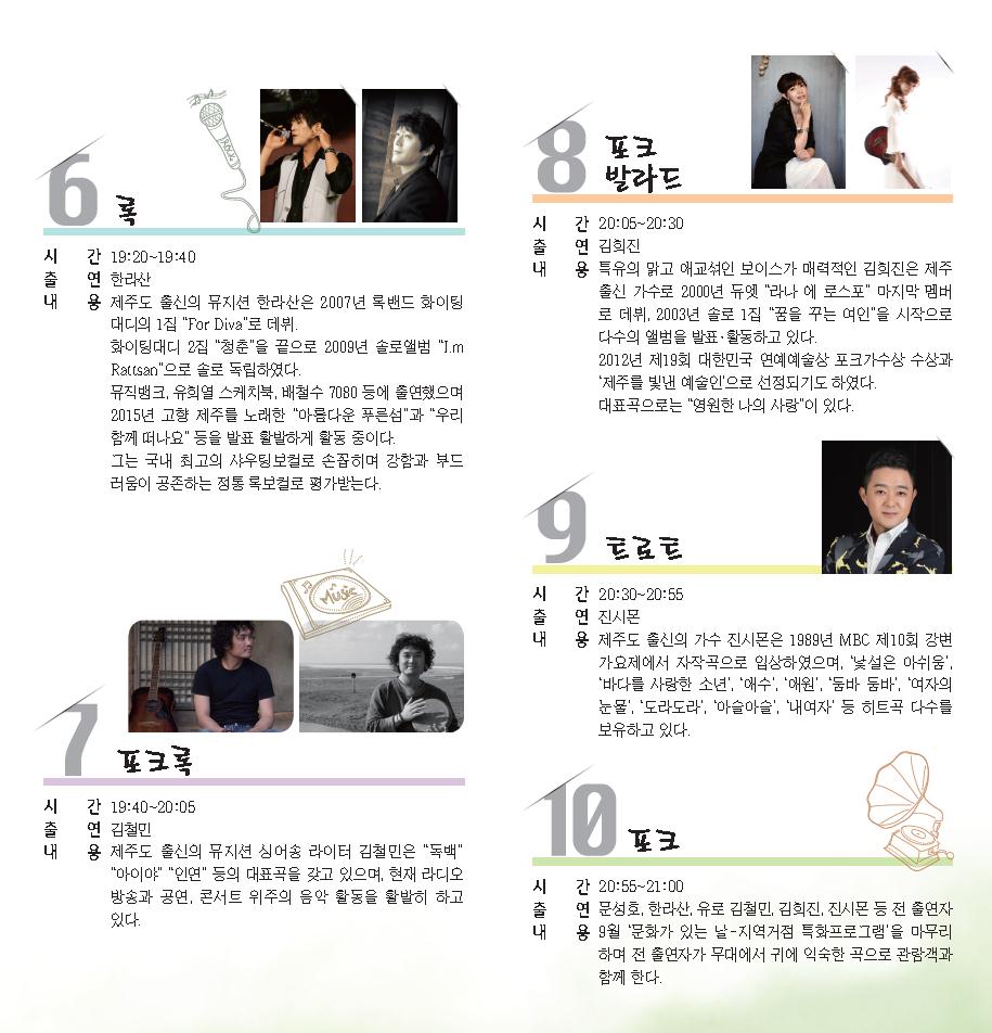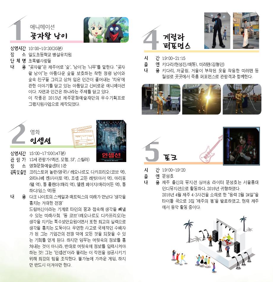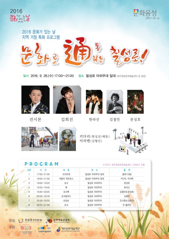 • 주소 (63277) 제주특별자치도 제주시 중앙로5길 6 칠성로 야외무대 일대 (제주영화문화예술센터 앞)