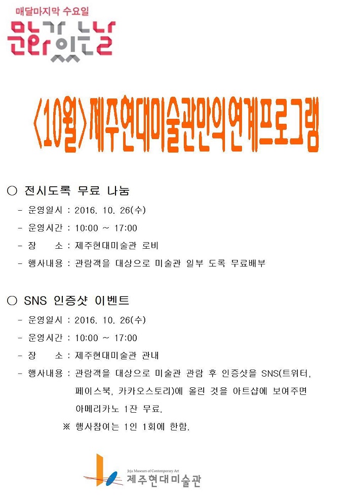 ♡10.26(수) 문화가 있는 날♡ 제주현대미술관만의 연계 프로그램