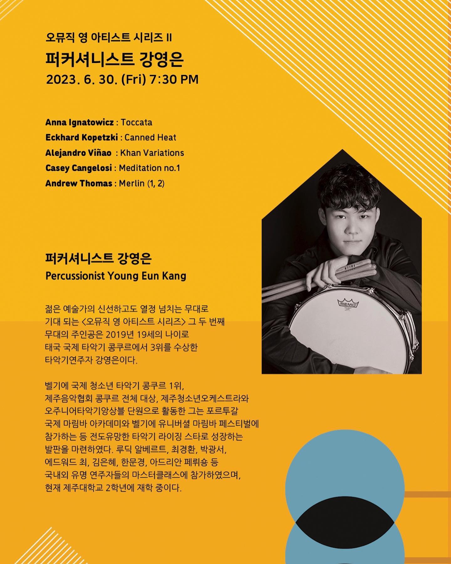 2023 오뮤직 하우스 콘서트 - 영 아티스트 시리즈 II : 퍼커셔니스트 강영은 독주회